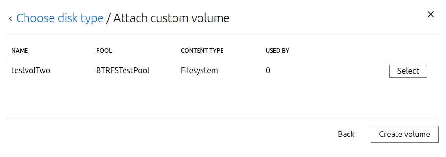 • Storage volumes of content type block or iso cannot be attached to containers, only to virtual machines.
